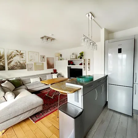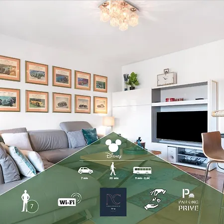 Het 1-slaapkamer *Disneyland/SERRIS* Appartement de haut standing appartement biedt gasten een buspendel en ligt op 45 km van Parijs-Charles de Gaulle luchthaven. Dit appartement van 60 m^2 nabij het Val d'Europe winkelcentrum biedt een waterpark en een golfbaan.